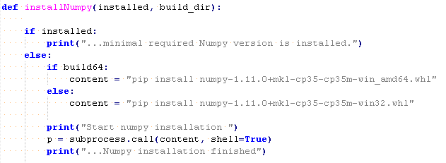 - Set the numpyRequiredVersion to the Numpy version, which is attached to the all-in-one development setup. E. g.: “1.11.0”