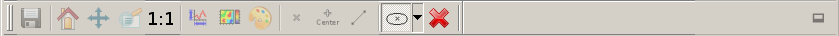 By clicking the tools >> clear marker menu, all current shapes are deleted. After creation the geometric elements can be edited by left-clicking one of the element handles which becomes high-lighted (squares) and moving the mouse. By pressing the “ctrl”-button during mouse-movement the element resize behaviour will be changed depending on the element type. Lines will be changed to horizontal or vertical alignment. Rectangles and ellipses will be become squares or circles according to plot coordinates (x/y-space) and not pixel coordinates. To avoid confusion with plot aspect, a button for fixed axis aspect ratio (“1:1”) was added to the plot bar.